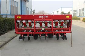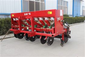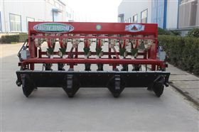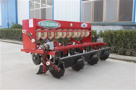 六行三垄花生精播机,带有变速调节器,可以播种过程中,调节播种的种距,精播机后有大型起垄压土磙。